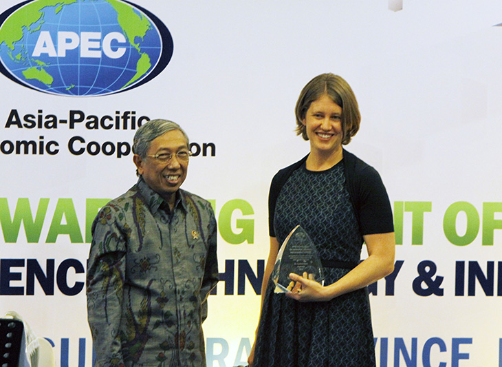 Dr. Carissa Klein of Australia was awarded the APEC Science Prize for Innovation, Research and Education (ASPIRE) on Monday by Gusti M. Hatta, Indonesia’s Minister of Research and Technology.