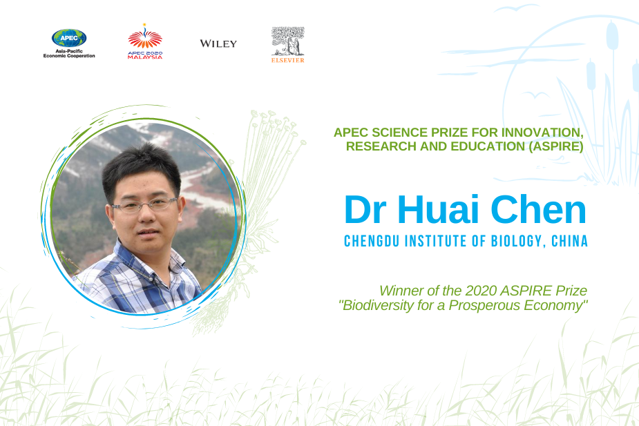 ![]() | 2020: Biodiversity for a Prosperous Economy Dr Huai Chen was awarded the 2020 ASPIRE Prize at an online ceremony by Dr Siti Hamisah Tapsir, Secretary General, Ministry of Science, Technology and Innovation (MOSTI) Malaysia. Dr Chen is a professor at Chengdu Institute of Biology, Chinese Academy of Sciences. His research is focused on wetland biodiversity and nature’s contribution to people. Dr Chen’s findings lead to a better understanding of