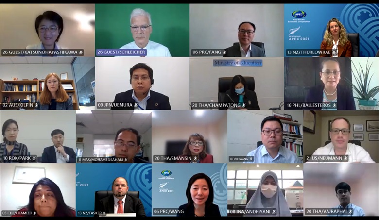 Ms. Duriya Amatavivat, Thailand Co-Chair of the EDNET, briefed on the achievements of APEC education cooperation in 2022. Under the priorities of “Open. Connect. Balance” of the Thailand Year of APEC, and the theme of “Quality Education for Sustainable Growth” of the EDNET, Thailand has successfully organized a series of events and implemented several projects, notably the Visions of APEC Education Ministers, the APEC Youth Forum on Green and Eco-Friendly Awareness, and the APEC Conference the Collaborative Direction for Education, Employment, and Decent Work in the VUCA World.