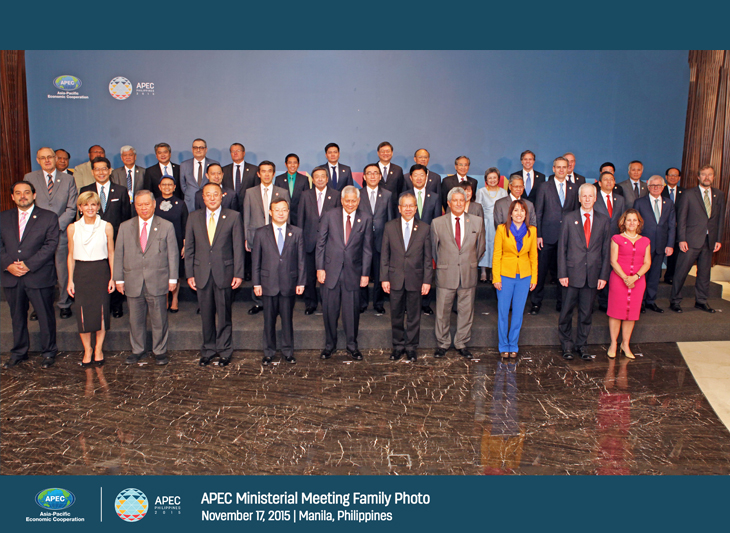 We, the Asia Pacific Economic Cooperation (APEC) Ministers convened on 16-17 November 2015 in Manila, the Philippines under the chairmanship of Albert F. del Rosario, Secretary of Foreign Affairs, and Gregory L. Domingo, Secretary of Trade and Industry.