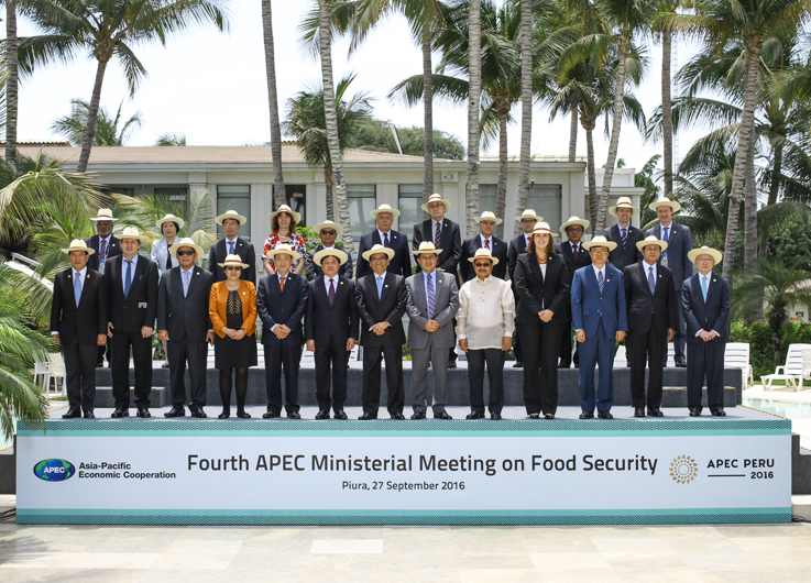 - We, the APEC Ministers and Heads of Delegation responsible for food security, met in Piura, Peru, from 26 to 27 September 2016 under the chairmanship of Mr. José Manuel Hernández, Minister of Agriculture and Irrigation of Peru, to discuss policy issues to strengthen regional food security and to contribute to achieving a sustainable APEC Food System by 2020.