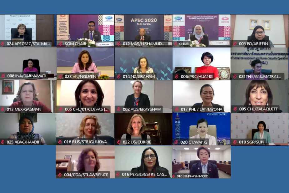 - We, APEC Ministers and Heads of Delegations, met virtually for the 2020 APEC Women and the Economy Forum (WEF) chaired by the Minister of Women, Family and Community Development of Malaysia, on 30 September 2020. We convened at an unprecedented time, during the COVID-19 pandemic which has adversely affected the well-being and livelihoods of all people across the Asia-Pacific region, and we recognise its disproportionate economic and social impacts on women and girls. The global challenges exacerbated by the pandemic require collective, coordinated and inclusive responses, and we are committed to strengthening APEC cooperation to mitigate their impacts. We acknowledge the call from APEC Ministers Responsible for Trade to urgently navigate the region towards a path of resilient, sustainable, inclusive and expedited economic recovery.