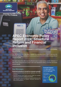 This 2-page fact sheet provides an overview of the 2024 APEC Economic Policy Report (AEPR) on Structural Reform and Financial Inclusion. The report discusses the crucial topic of Structural Reform and Financial Inclusion, addressing both demand-side and supply-side issues through structural reforms to facilitate all people to access and utilise financial services.